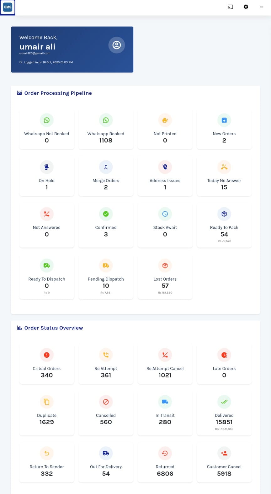 EcomTracks OMS transformed our daily workflow — the mobile dashboard gives realtime metrics, scanning is lightning-fast, and loadsheet uploads save us hours every week. Support is responsive too. Highly recommended.
